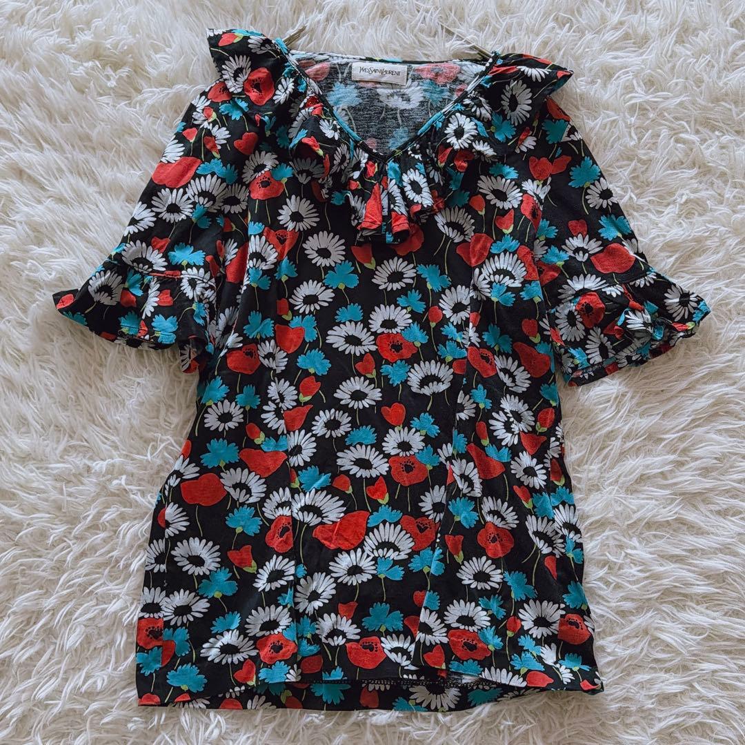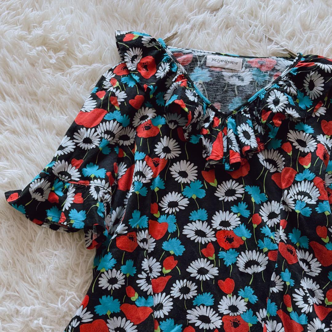 YvesSaintLaurent イヴサンローラン YSL セットアップ 花柄 フラワープリント ヴィンテージ レディース Mサイズ コットン 総柄スカート 半袖トップス レトロ モード ラグジュアリー 正規品 春夏