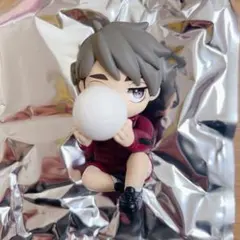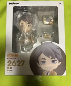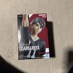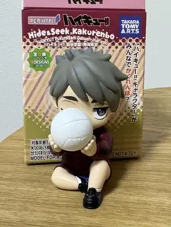 手を挙げたポーズのバレーボールフィギュア、黒色のユニフォームと台座付き。