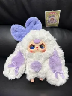 海外人気Baby Threeマカロンウサギの耳を持つカスタムドール2体、キーホルダー付き、オリジナルカード付き。