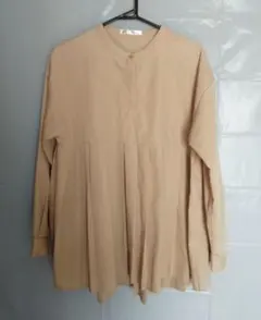鮮やかなレッドの長袖シャツ、プリーツデザインでスタイリッシュ。