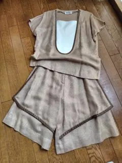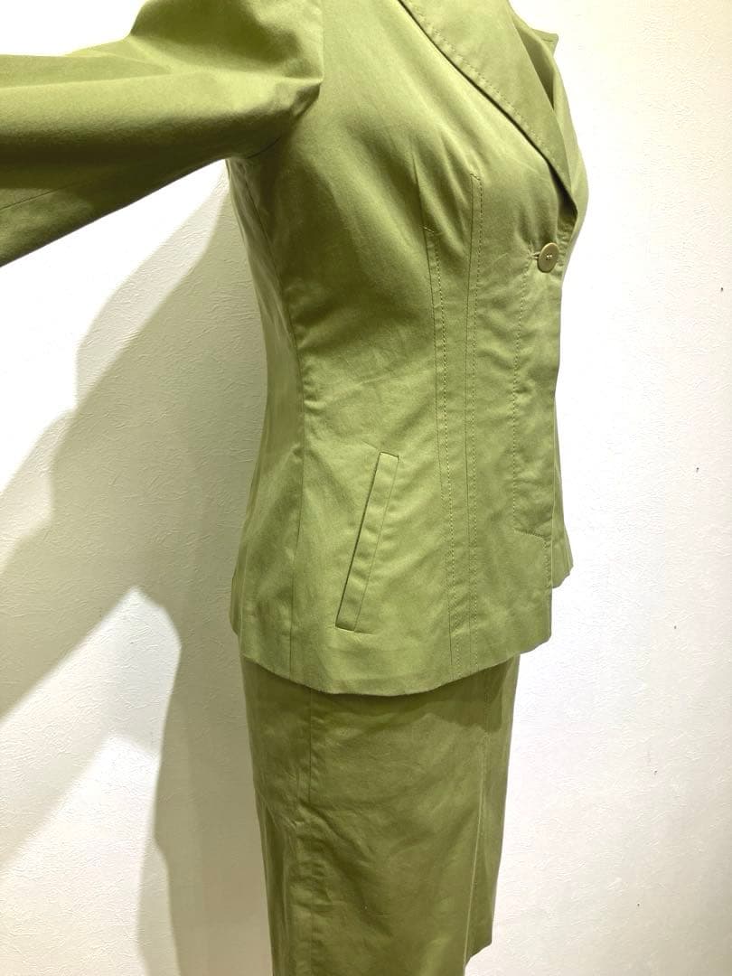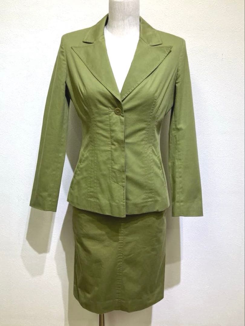 オリーブグリーンカラーのレディースセットアップスーツです。
