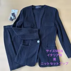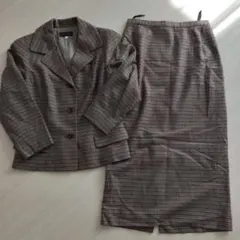 伸縮性のある素材でウエストラインが美しくエレガントな雰囲気でビジネスシーンに適したシングルボタンのジャケットと上品なシルエットが特徴のスカート。