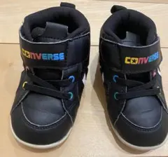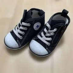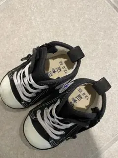 キャンバス素材のブラックハイカットシューズ、ジッパー付きで履きやすい。