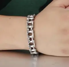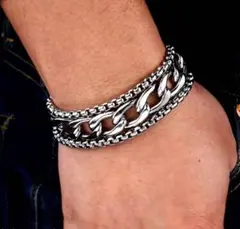 シルバーのチェーンデザインとトグル留め具のブレスレット。
