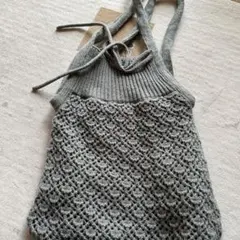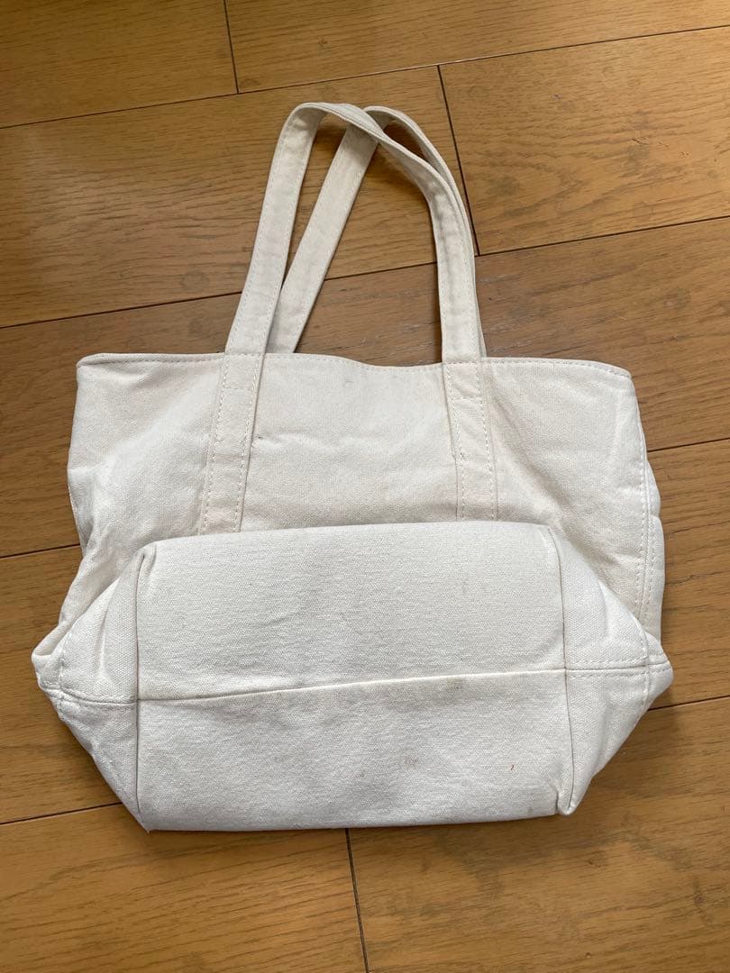 フリルデザインのホワイトトートバッグ、Bの刺繍付き。