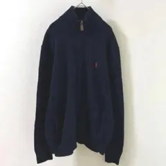 POLO RALPH LAUREN ポロバイラルフローレン ポニー刺繍 ニット セーター クルーネック ネイビー 薄手ニット コットン 綿100% QRタグ 現行モデル 復刻 メンズ Mサイズ 定番 シンプル カジュアル ビジネス 古着コーデ 秋冬 春服