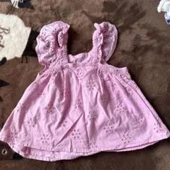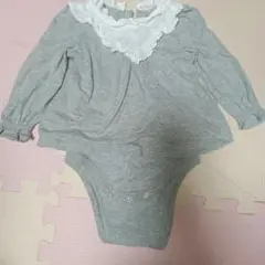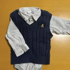 マルチカラーのストライプデザインで、刺繍入りポケットが特徴のベビーシャツ。