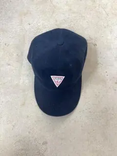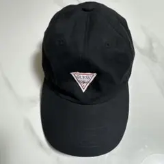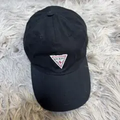 デニム素材のGUESSキャップ、調整可能なストラップ付き。
