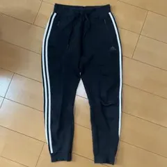 ミントグリーンのadidasジョガーパンツ、サイドストライプ付きでスタイリッシュ。