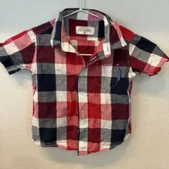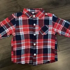 美品 赤チェック柄 長袖シャツ 90cm 綿100%
