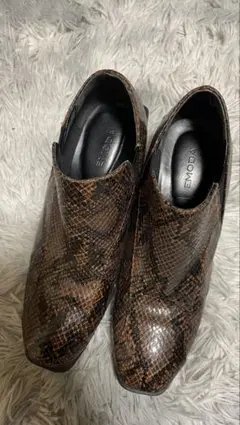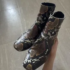パイソン柄のチャンキーヒールのブーツは、トレンドを意識したデザインで、どんなコーディネートにも合わせやすいです。