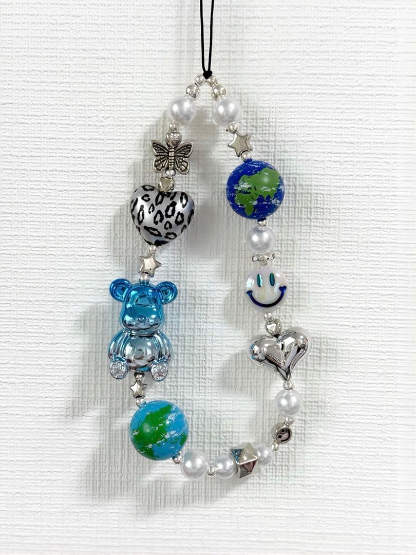 #ビーズストラップ #携帯ストラップ #スマホストラップ #ビーズアクセサリー #ハンドメイド #ハンドストラップ #ビーズキーホルダー #ビーズ #くま #雲 #ハート #リボン #地球