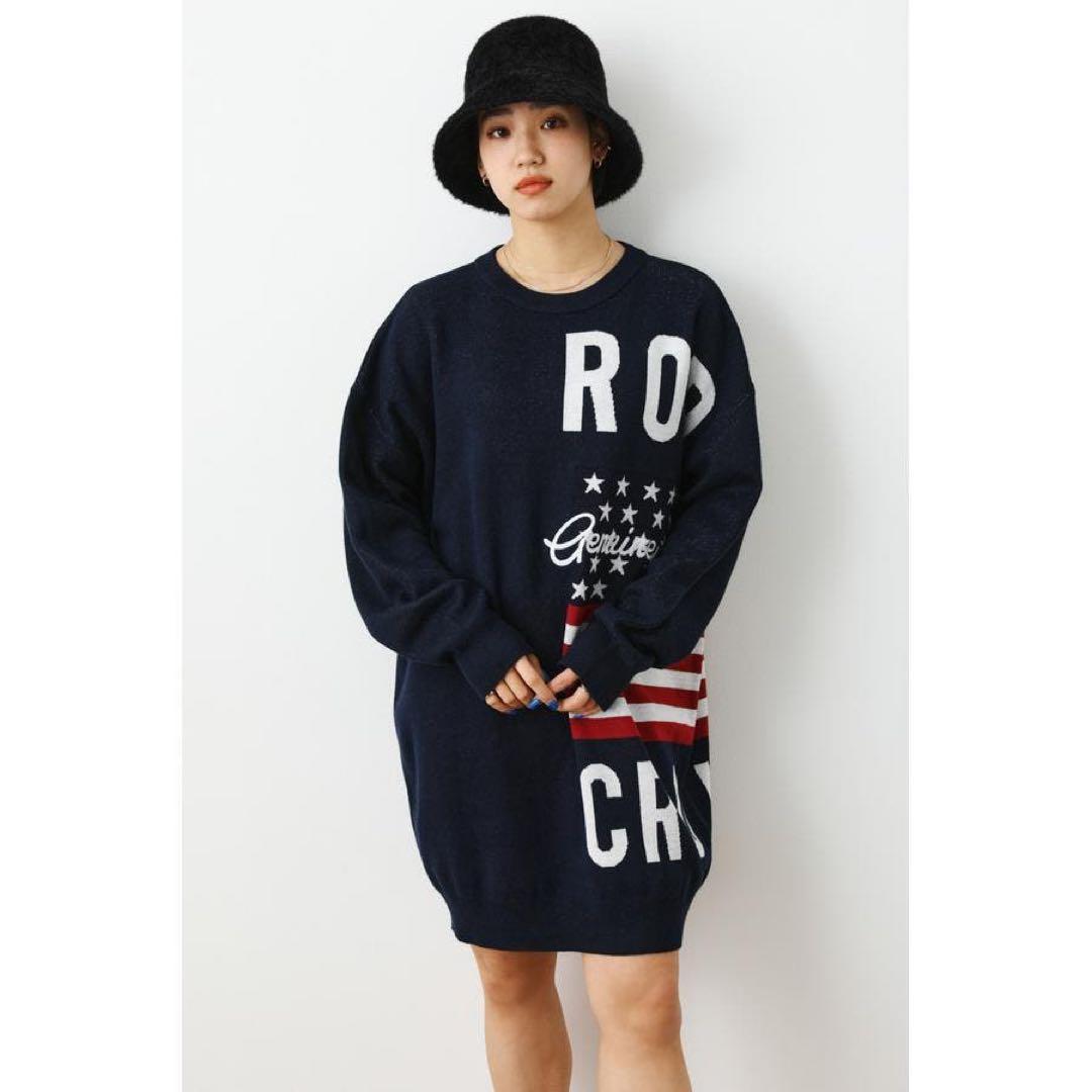 RODEOらしさを盛り込んだインパクトのあるニットワンピース。編地は重くなりすぎないよう、ニットの肉を調整。色数が多いものの、ほどよい厚さに仕上げたアイテム。