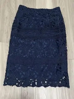 繊細な花柄の総レースが上品なタイト〜セミフレアシルエットのスカートです。落ち着いたネイビーカラーなので、通勤スタイルから結婚式、二次会などのパーティーシーンまで幅広く活躍します。