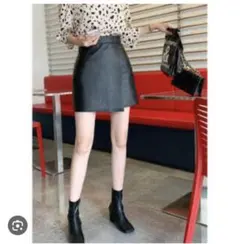 レザー調台形ミニスカ...