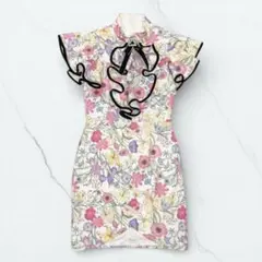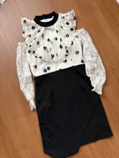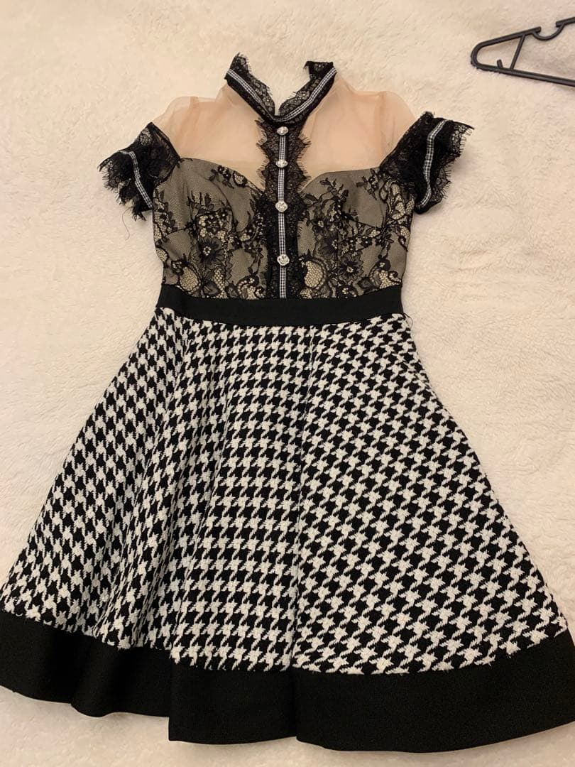 上半身はブラックレースデザイン、スカートは千鳥柄でとても可愛いデザインです。キャバドレスやパーティーにおすすめです。