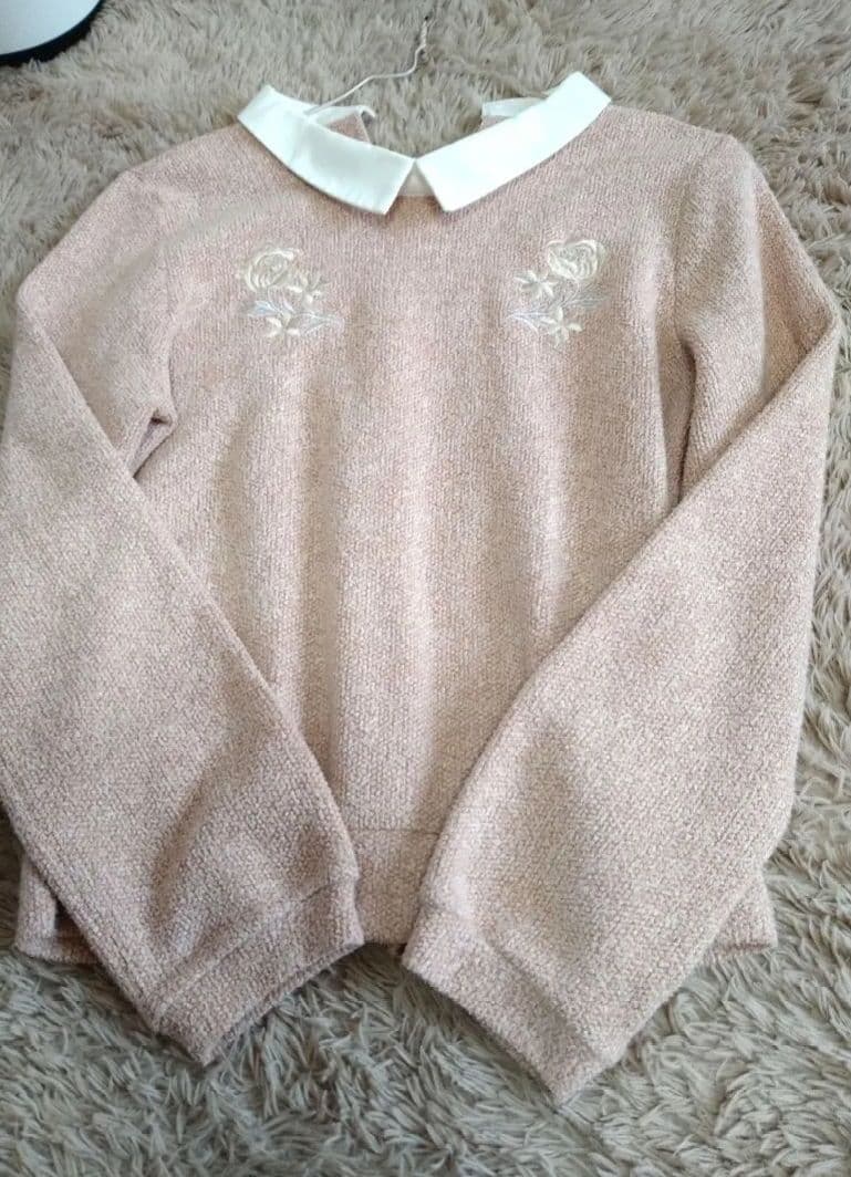 花刺繍薄手ニットプルオーバー ピンク しまむら