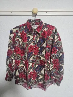 80s 古着 ヴィンテージ Balise-U 総柄デザインシャツ 個性