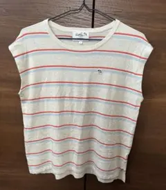 グレーの半袖Tシャツ、胸に小さな刺繍付き、サイズ2。