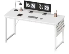 高さ調整可能で、キャスター付きのホワイトデスク。