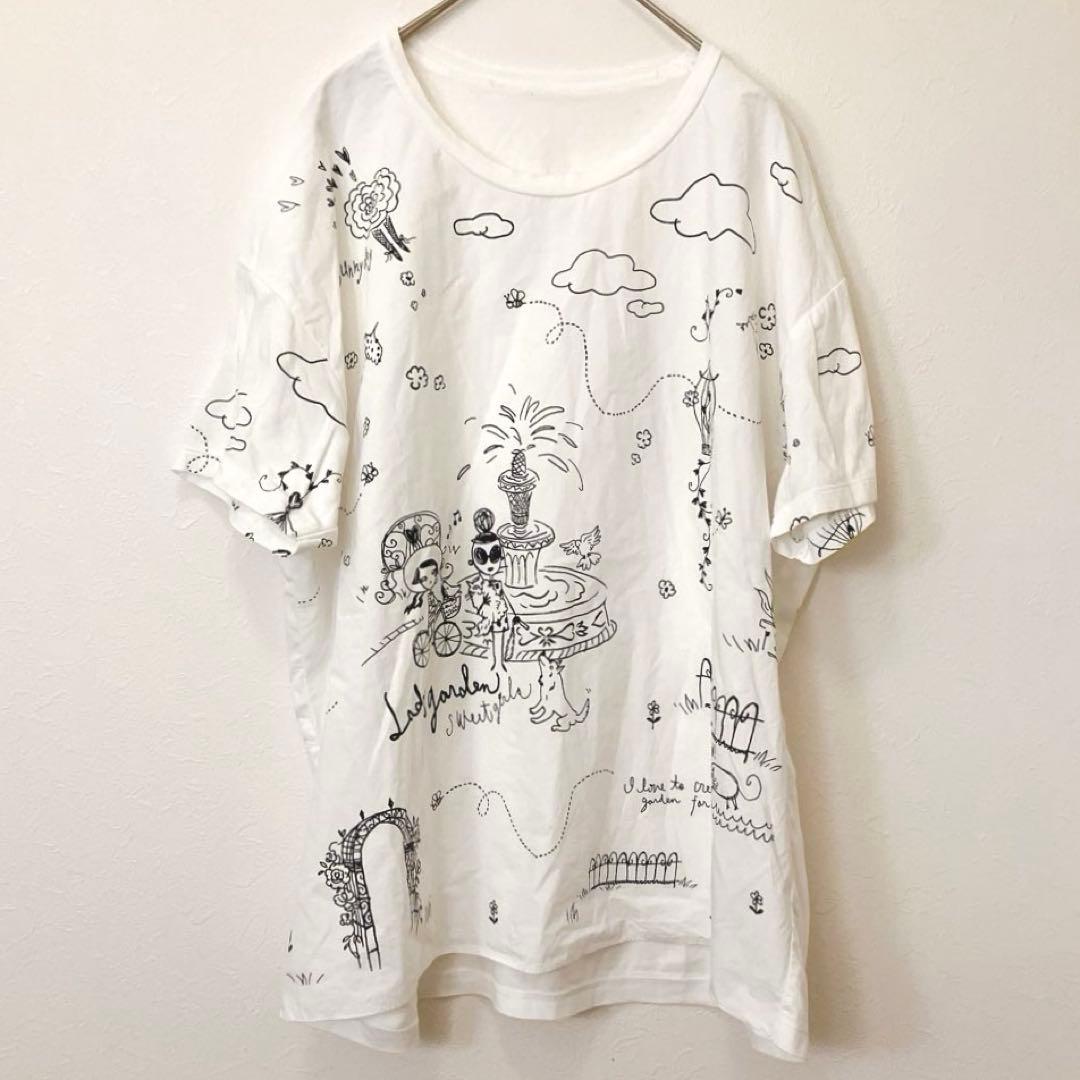 ◆白地に落書き風のプリントが施されたポップなデザインの半袖Tシャツ。ゆったりとしたシルエットでカジュアルなスタイルにぴったりなTシャツです✨✨