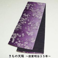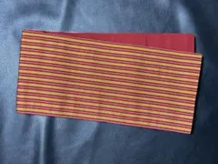 鉛丹色の地にシルバーブルーなエキゾチックな更紗花模様が美しく高級感のある半幅帯。裏面無地
