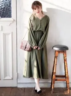 ドビーストライプVネック ワンピース