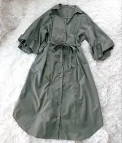 ボタン付きシャツワンピース、フレアシルエットでリラックスした着心地♡