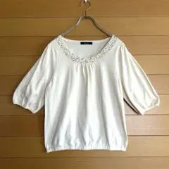 アクリル100% 五分袖ニット M
