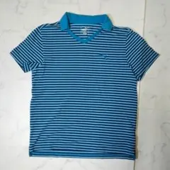②プーマVネック トレーニングシャツ ネイビー ストライプ ゴールド M 半袖