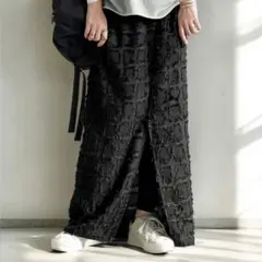 ウエスト総ゴム、後ろスリットでストレスフリー。