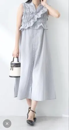 襟ぐりと袖ぐりのフリルディテールがキュートなデザイン