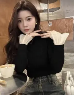 ブラック タートルネック 長袖トップスSHEIN 黒 タートルカットソー