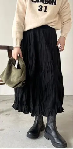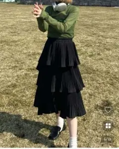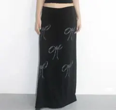 リボン柄ロングスカート ブラック nugu dholic sollon ZARA