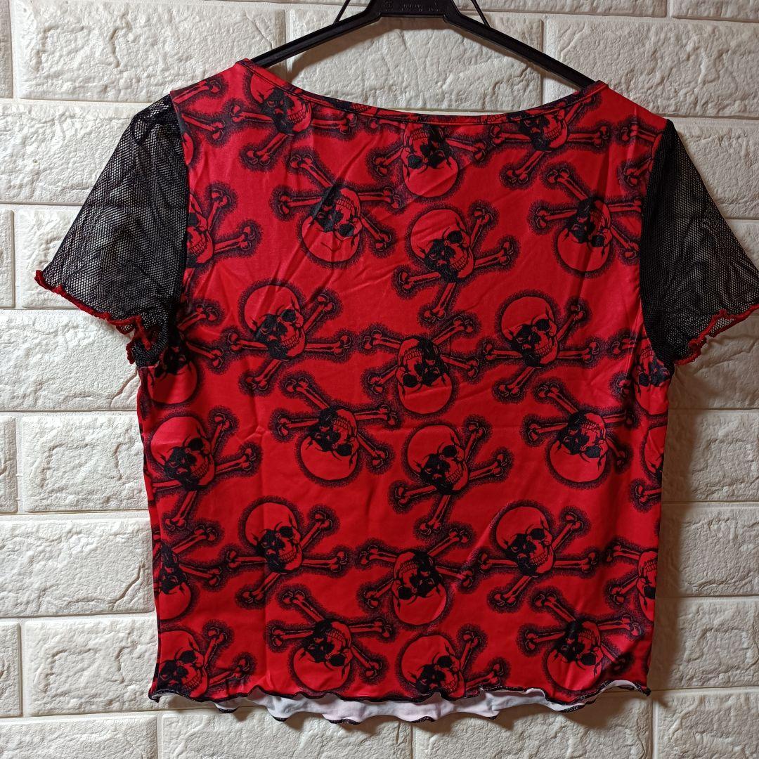 ★カラー/赤、黒のスカルプリント、袖は黒のメッシュ
