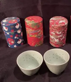 和風茶筒4個と湯呑2...