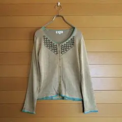 ベージュ アクリルカーディガン 麻入り イージケア 春服