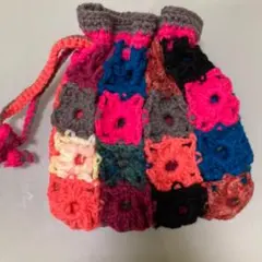 手編みカラフル巾着