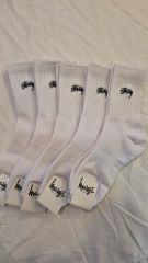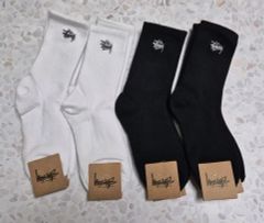 ナイキとステュッシーのような2つの大手企業がチームを組むと、結果として得られるデザインは主張の余地があると期待するでしょう。それでも、デュオはこれらの靴下に関しては物事をクラシックに保ちます。シンプルでスポーティなこれらの唯一の特徴は、スウッシュとブロックレターのStussyロゴです。