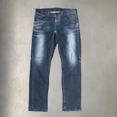 おそらく80〜90年代頃のジーンズかと推測されます。絶妙なヒゲや色落ちアタリで味がありますね!サイズ表記は28でS相当かと思います。素材は綿100%。一般的な古着並みの使用感があると思います。保管時のたたみジワございます。写真を参考にしてください。ビンテージ古着(多少の傷汚れ)にご理解のある方いかがでしょうか?