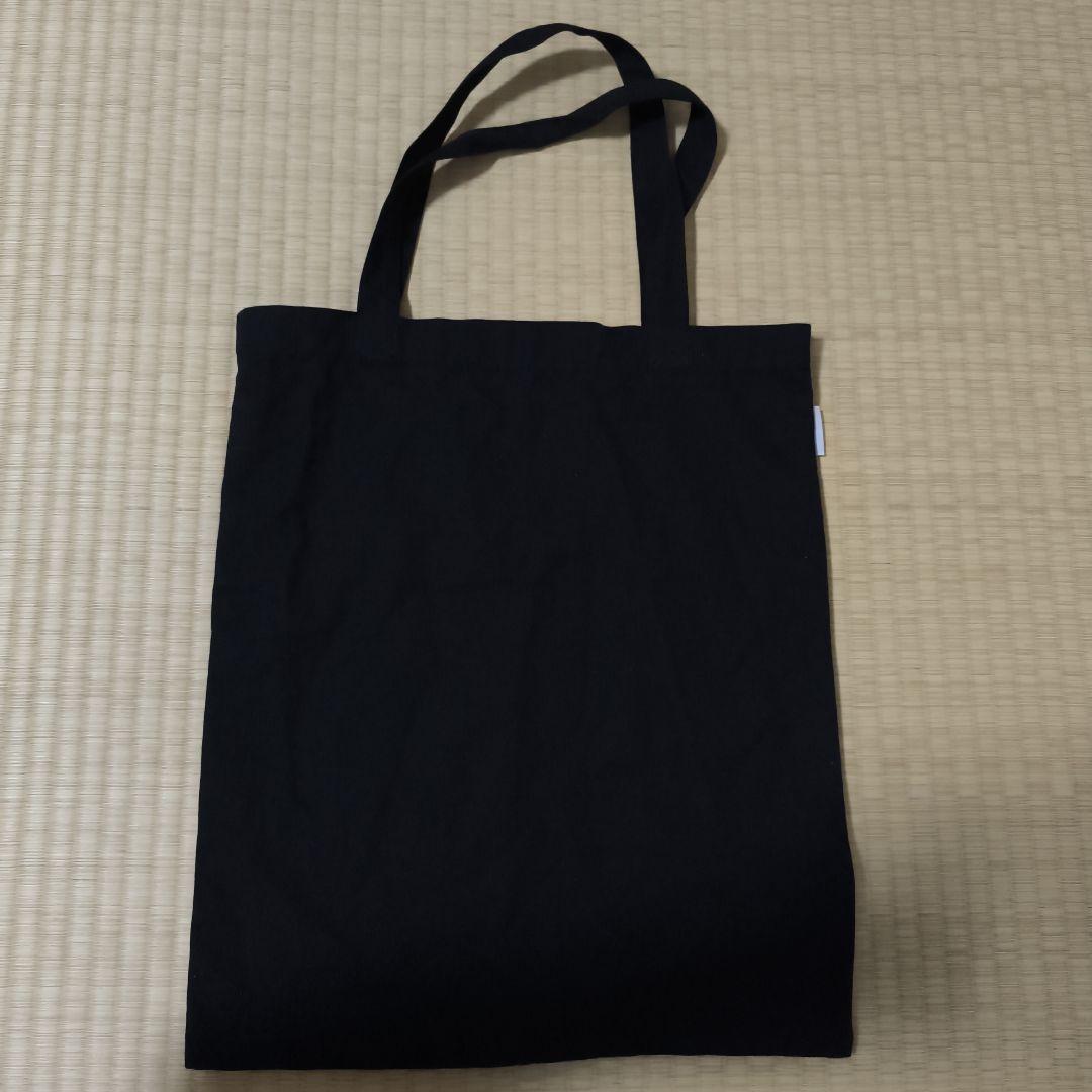 SUPERGAとTOMORROWLANDのコラボトートバッグ、シンプルでスタイリッシュなブラックデザイン。非売品です。