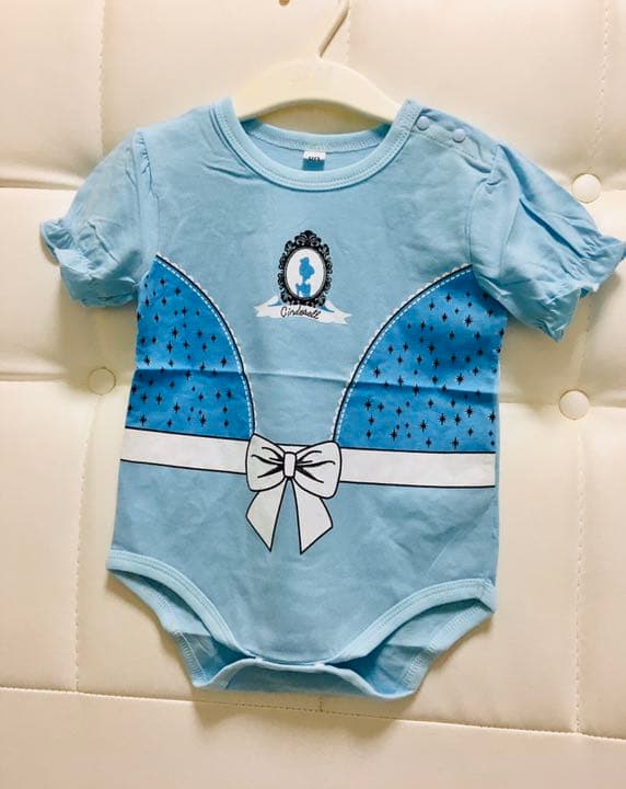 ロンパース 女の子 水色 ディズニーふう 春夏 半袖 薄手