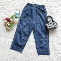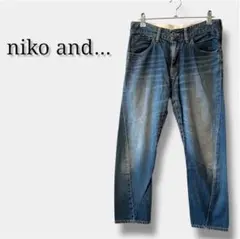 niko and... ニコアンド ストライプデニム タック入バギーパンツ S