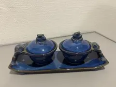 青い陶器のカエル装飾...