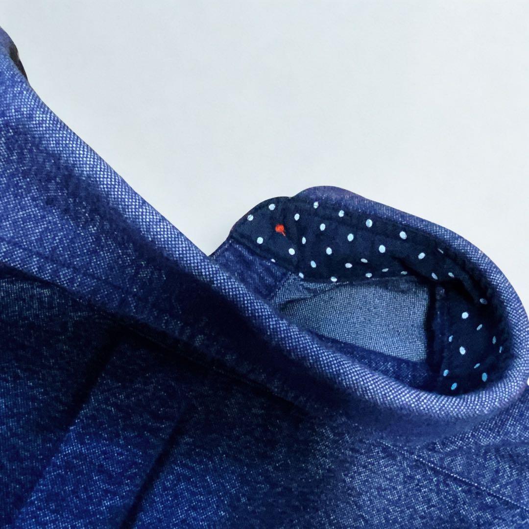胸ポケットのバニー刺繍と、裾のフラッグワッペンがアクセントになった人気モデルです。袖口がドット柄なのもおしゃれなポイントです。襟元が変色して見えますが外側からは見えません。