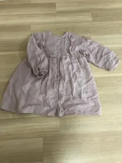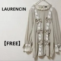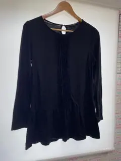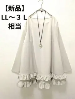 フリルデザインのホワイト長袖チュニック、リボン付き。