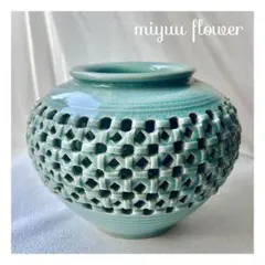 青緑色 陶器 花瓶 ...