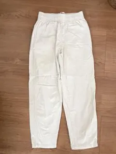 ウエストゴムとドローストリング付きのホワイトワイドパンツ。
