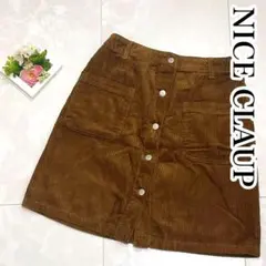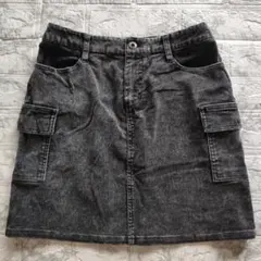 ダークブルー コーデュロイ ミニスカート ベルト付き