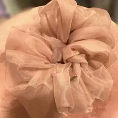 上質なゴールドブラウンのベルベット生地を使用したスクエアシュシュです。ベルベットならではの柔らかな光沢と、深みのある色合いが特徴です。